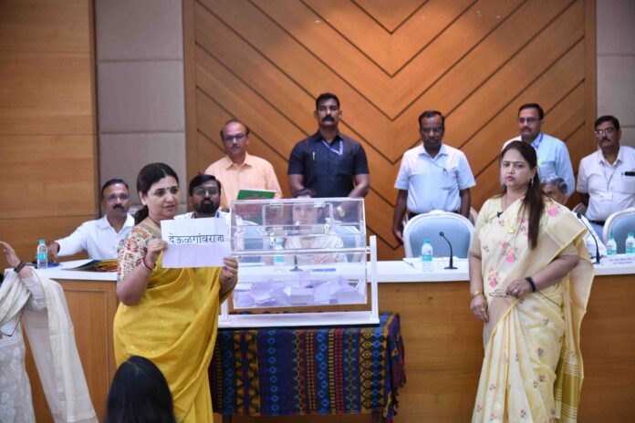 mumbai – राज्यातील 247 नगरपरिषदा आणि 147 नगर पंचायतींच्या नगराध्यक्षपदांची आरक्षण सोडत नगरविकास राज्यमंत्री माधुरी मिसाळ यांच्या उपस्थितीत पार पडली.